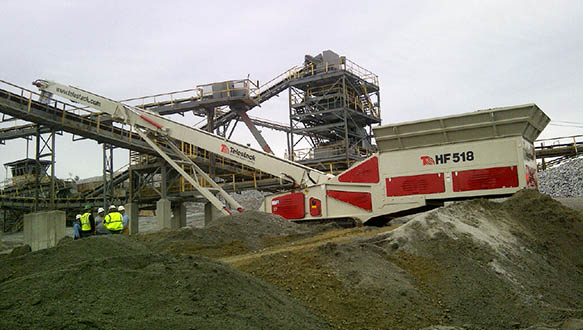 - Бункери місткістю до 35 м³ для прийому матеріалу зі всіх типів ковшових навантажувачів або грейферних перевантажувачів/кранів та екскаваторів