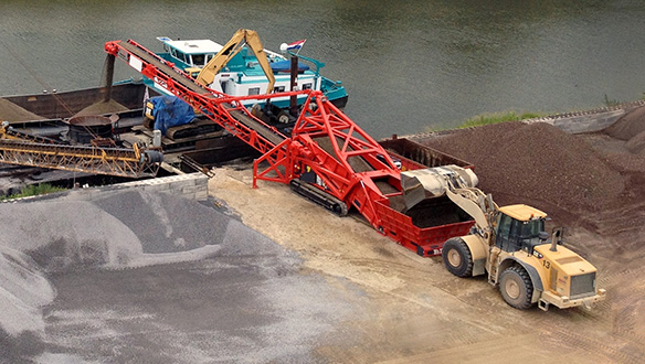 Використання мобільних живильників з приймальними бункерами для завантаження суден надає оператору можливість розвантажувати самоскиди безпосередньо на причалі, виключаючи вивантаження спочатку на склад, тобто запобігає подвійній перевалці матеріалу. Це допомагає оператору зменшити час на завантаження судна для того, щоб максимізувати рівень продуктивності та мінімізувати витрати на робочу силу й технічне обслуговування завдяки можливості використання єдиної одиниці як для розвантаження самоскидів, так і для вантаження судна. Повністю мобільні самохідні одиниці можуть використовуватись для завантаження барж і малих суден каботажного плавання, приймаючи матеріал прямо із самоскидів, що максимізує продуктивність перевалки та мінімізує кількість робочої сили, задіяної у вантажних операціях.