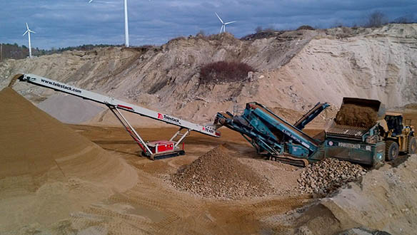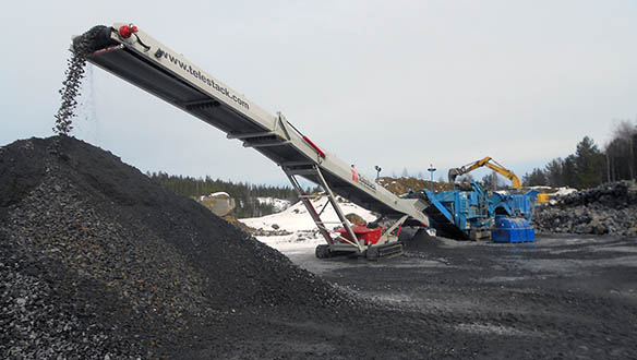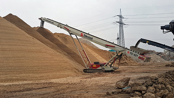 Мобільні конвеєри Telestack на гусеничному ходу є ідеальним рішенням для штабелювання продукції після мобільних дробарок і грохотів. Мобільність і маневреність цих конвеєрів дозволяють мінімізувати або, навіть, зовсім виключити необхідність використання ковшових навантажувачів на виробничому майданчику.