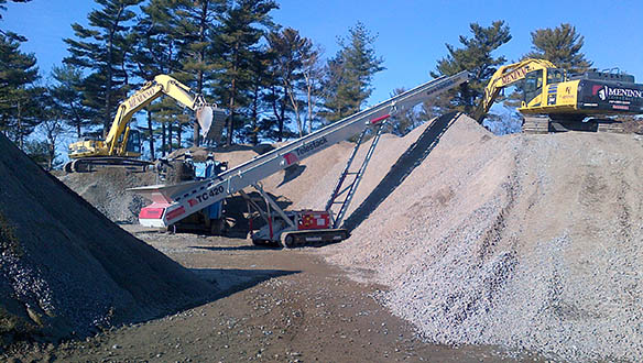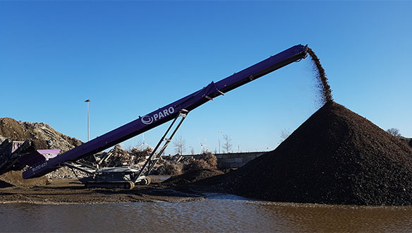 - Штабелювання дробленого каміння, щебеню, гравію та піску, мінеральних руд і т.п.