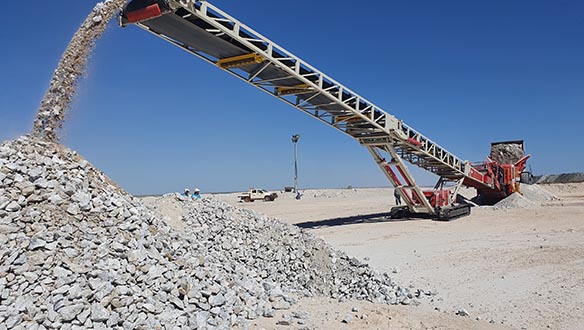 - Укладання штабелів продукції безпосередньо після дробарок первинного дроблення (щокових чи ударних/молоткових)