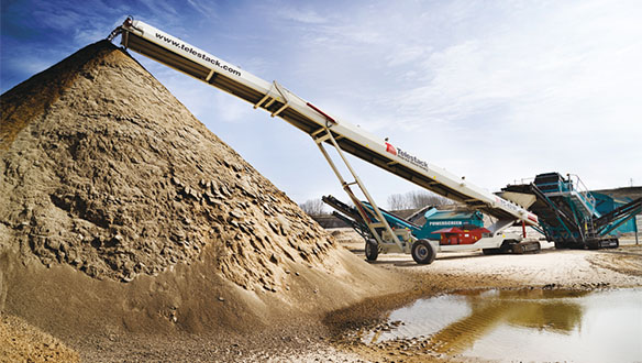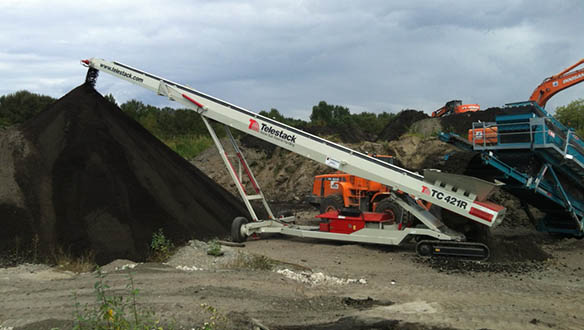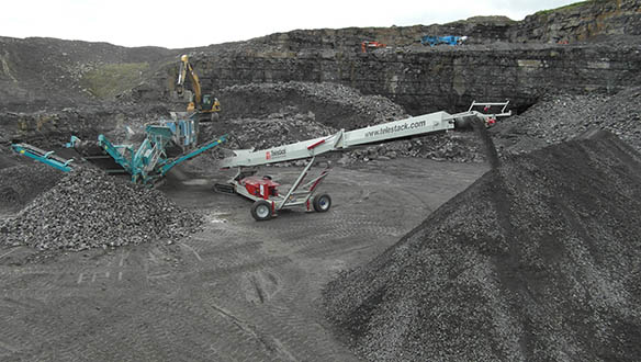 Радіальні конвеєри Telestack на гусеничному ходу є ідеальним рішенням для штабелювання продукції після мобільних дробарок і грохотів. Мобільність і маневреність цих конвеєрів дозволяють мінімізувати або, навіть, зовсім виключити необхідність використання ковшових навантажувачів на виробничому майданчику.