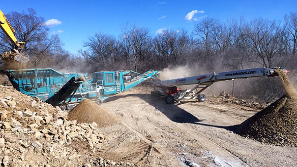 - Укладання штабелів продукції безпосередньо після дробарок первинного дроблення (щокових або ударних/молоткових)