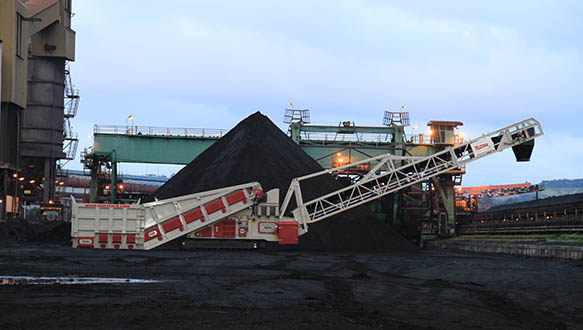 Реклаймінг матеріалу для живлення конвеєрних систем, що вантажать судна та залізничні вагони