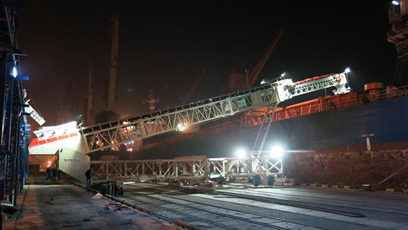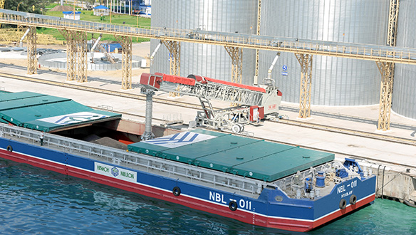 Гнучкий процес завантаження судна завдяки плавному пересуванню уздовж причалу/судна по рейках
