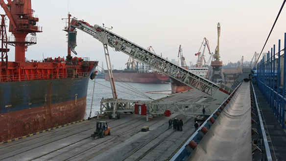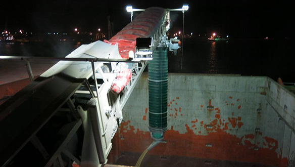 - Повне сполучення зі скидаючим візком стаціонарної конвеєрної системи, що подає матеріал на суднонавантажувач, для забезпечення синхронізованої роботи всього суднонавантажувального комплексу