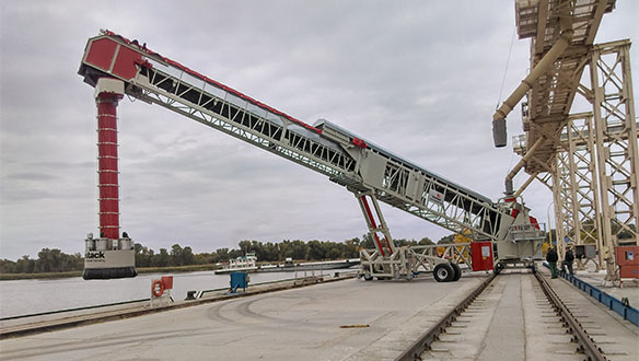 Телескопічні суднонавантажувачі на рейковому ходу поєднують у собі маневреність телескопічної технології з високою мобільністю пересування по рейках по причалу вздовж судна.