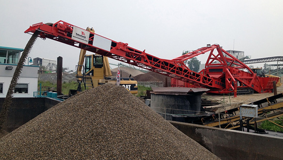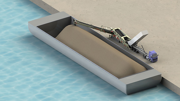 Використання мобільних живильників з приймальними бункерами для завантаження суден надає оператору можливість розвантажувати самоскиди безпосередньо на причалі, виключаючи вивантаження спочатку на склад, тобто запобігає подвійній перевалці матеріалу. Це допомагає оператору зменшити час на завантаження судна для того, щоб максимізувати рівень продуктивності та мінімізувати витрати на робочу силу й технічне обслуговування завдяки можливості використання єдиної одиниці як для розвантаження самоскидів, так і для вантаження судна. Повністю мобільні самохідні одиниці можуть використовуватись для завантаження барж і малих суден каботажного плавання, приймаючи матеріал прямо із самоскидів, що максимізує продуктивність перевалки та мінімізує кількість робочої сили, задіяної у вантажних операціях.