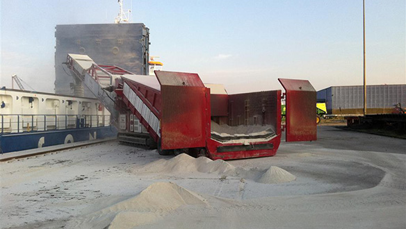 - Можуть використовуватись також для розвантаження судна у комбінації з грейферними перевантажувачами і кранами чи ковшовими навантажувачами
