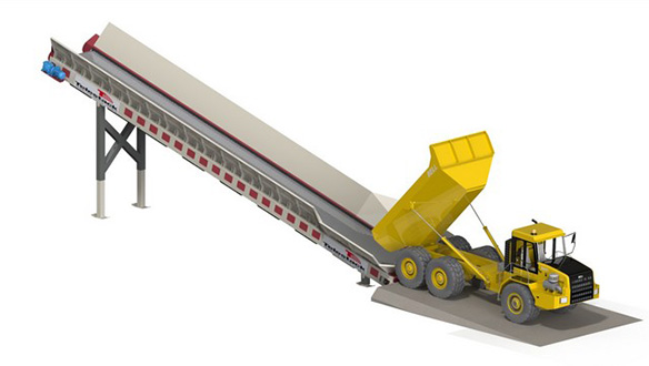 Конструкції цих машин базуються на модульній концепції таким чином, що індивідуальні модулі головної та хвостової частин можуть сполучатись з різними модулями фідерної та похилої конвеєрних секцій, що дає можливість зробити машини різних типів і форм, забезпечуючи прийом різноманітних сипких матеріалів із самоскидів різних розмірів та типів, ковшових навантажувачів, грейферних кранів та перевантажувачів.