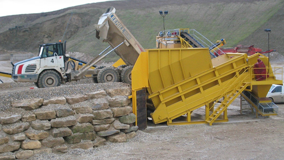 Стаціонарні живильники з приймальними бункерами TITAN надають можливість вивантажувати матеріал із самоскидів безпосередньо у приймальний бункер і подальшої його подачі у виробничо-технологічну систему, забезпечуючи контрольований потік матеріалу шляхом регулювання об’єму подачі. При цьому виключається подвійна перевалка матеріалу. Якщо технологічним процесом передбачається попереднє накопичення необхідної кількості матеріалу на складі, завантаження матеріалу в живильник може здійснюватись ковшовими навантажувачами, грейферними кранами й перевантажувачами.