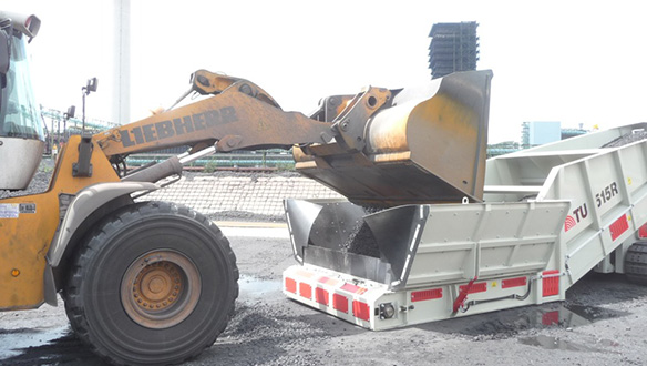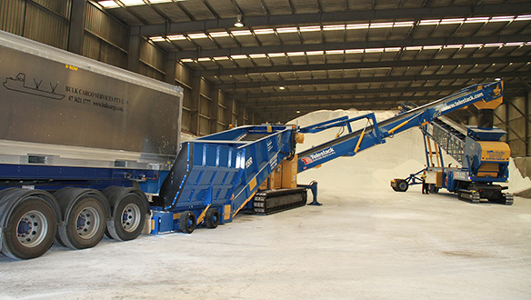 Можливість легко завантажуватись самоскидами, ковшовими навантажувачами, грейферними перевантажувачами й кранами, мобільними конвеєрними системами.